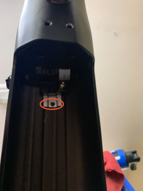 Now you can see up into the frame and find the lost throttle wire. The plug has a black cap over the yellow portion of the plug.